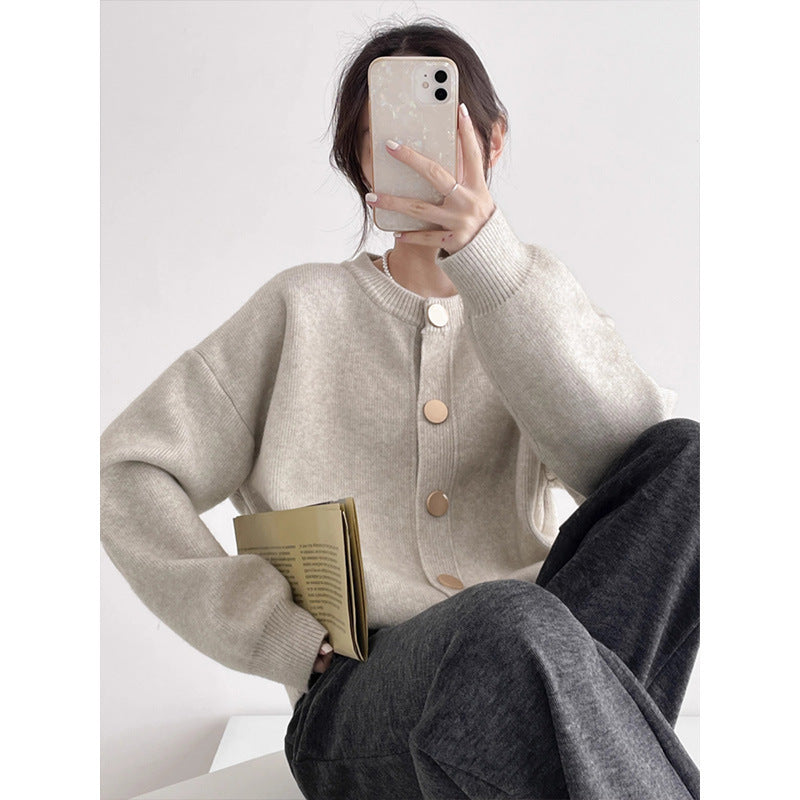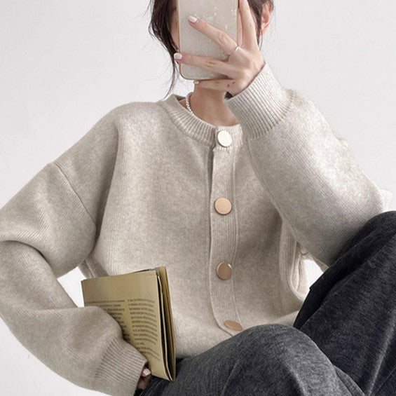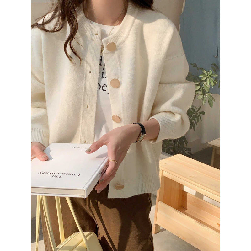 Button Knitted Cardigan Women's Sweater Korean Style Loose Soft Glutinous