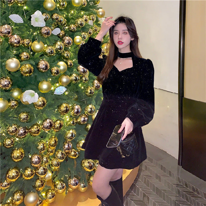 Christmas Red Annual Meeting Women's Velvet Dress Autumn And Winter New Temperament