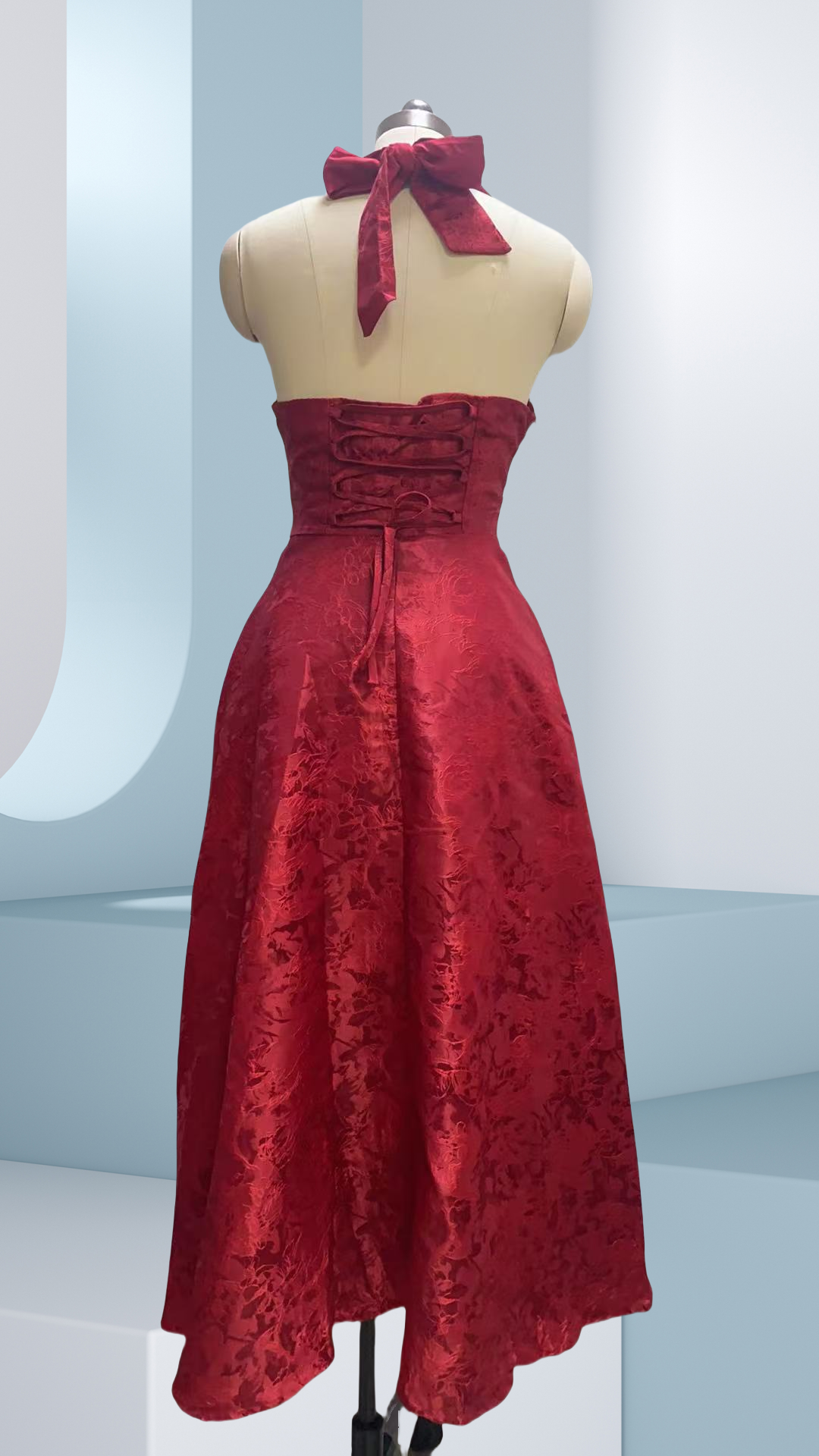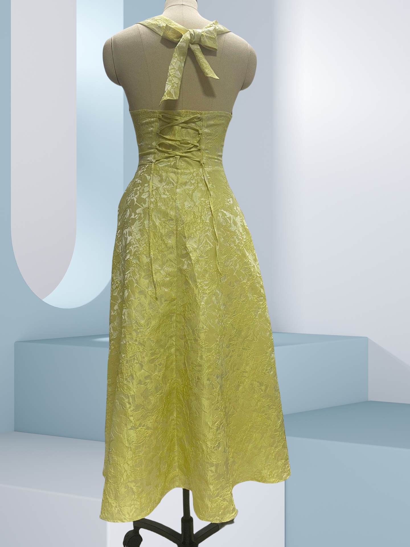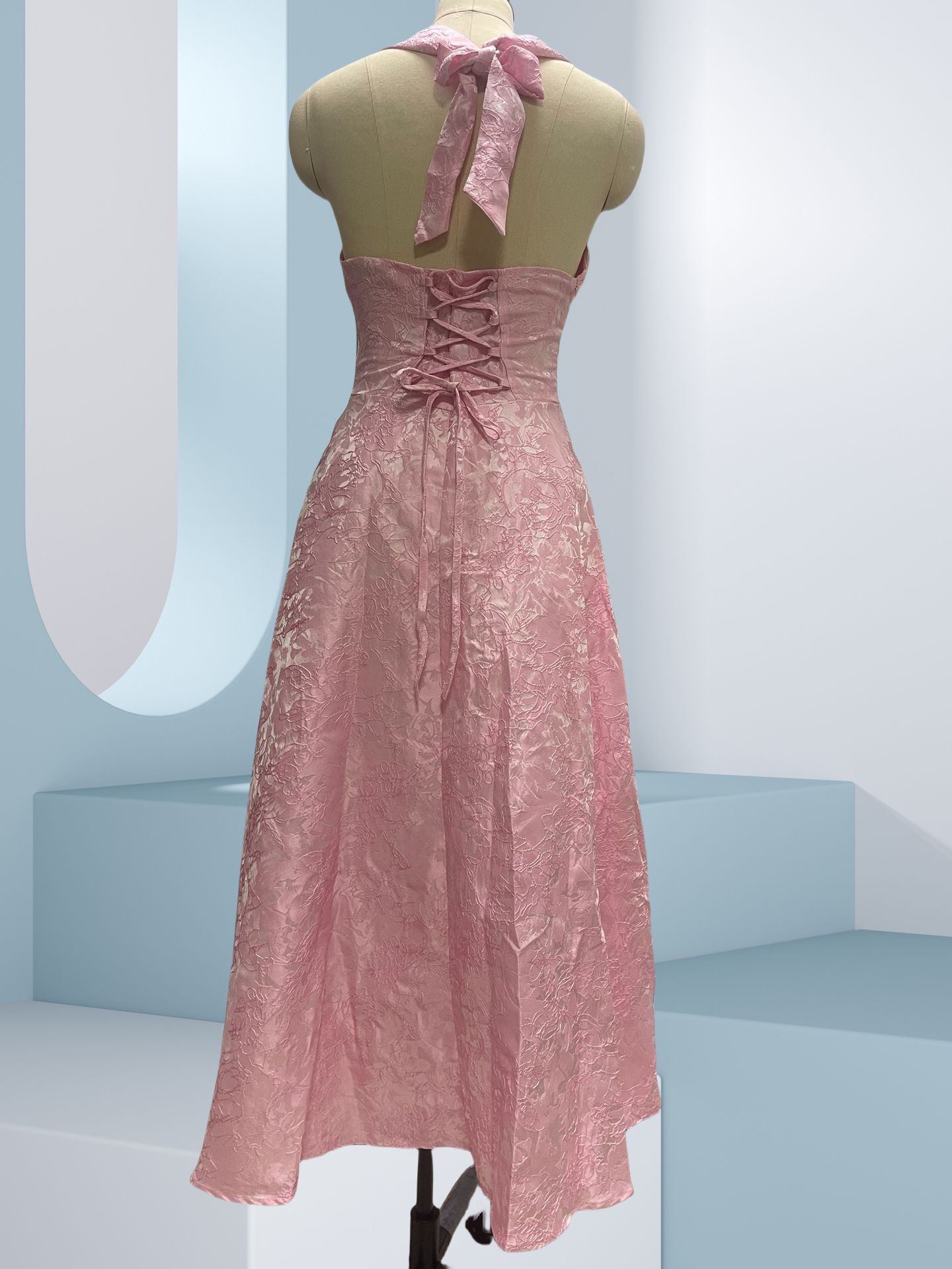 Picture yourself gliding through candlelit receptions, the delicate jacquard catching flickering lights as you turn. The whisper of fabric accompanies your every move at summer garden weddings, while the secure halter design lets you dance with confidence. This is the dress that transforms ordinary evenings into memories - where compliments flow as freely as champagne.