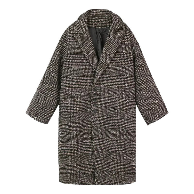 Fleece-lined Padded Coat Mid-length Plaid Wool Coat
