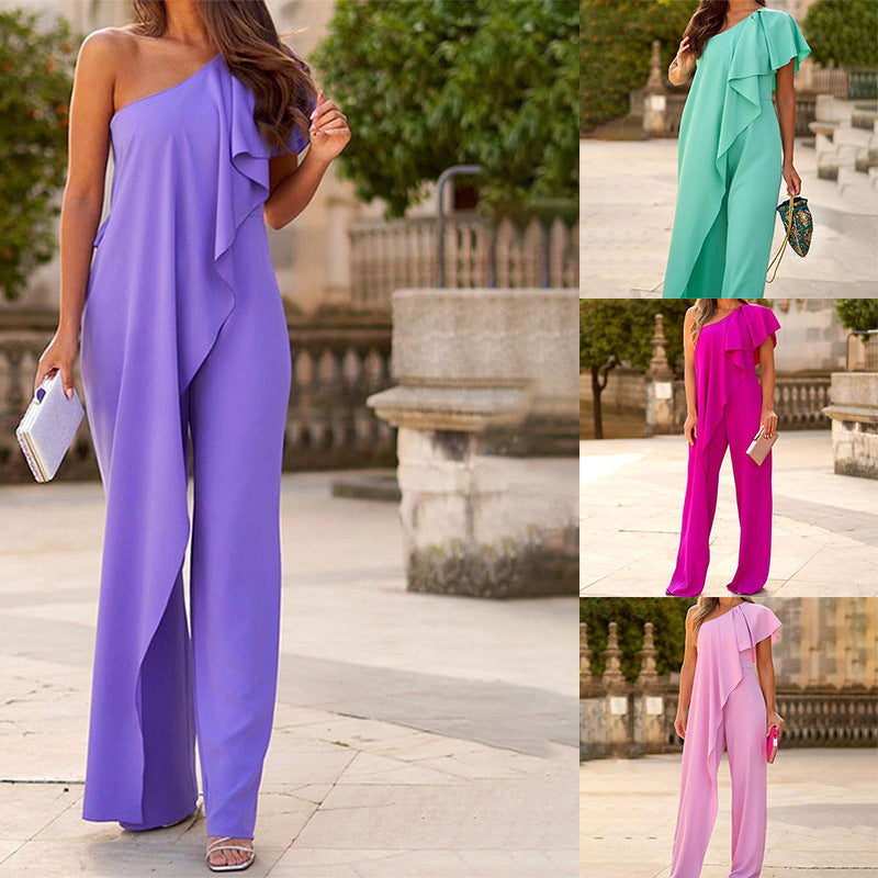 Off-shoulder Fashion Loose Long Solid Color Jumpsuit
