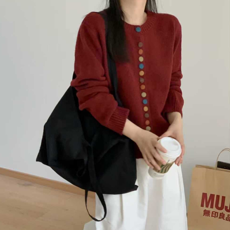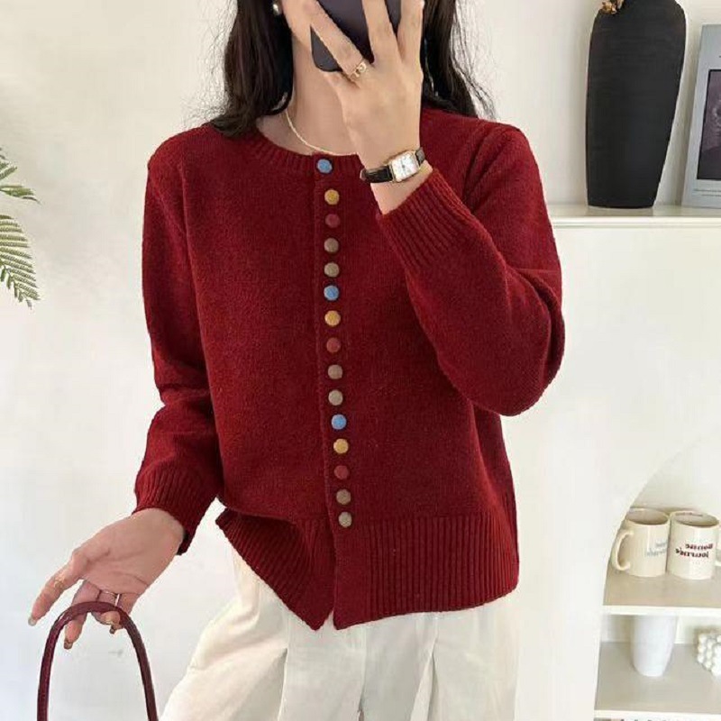 Temperament Wild Western Style Youthful-looking Vintage Wine Sweater Coat