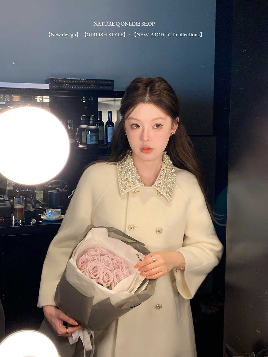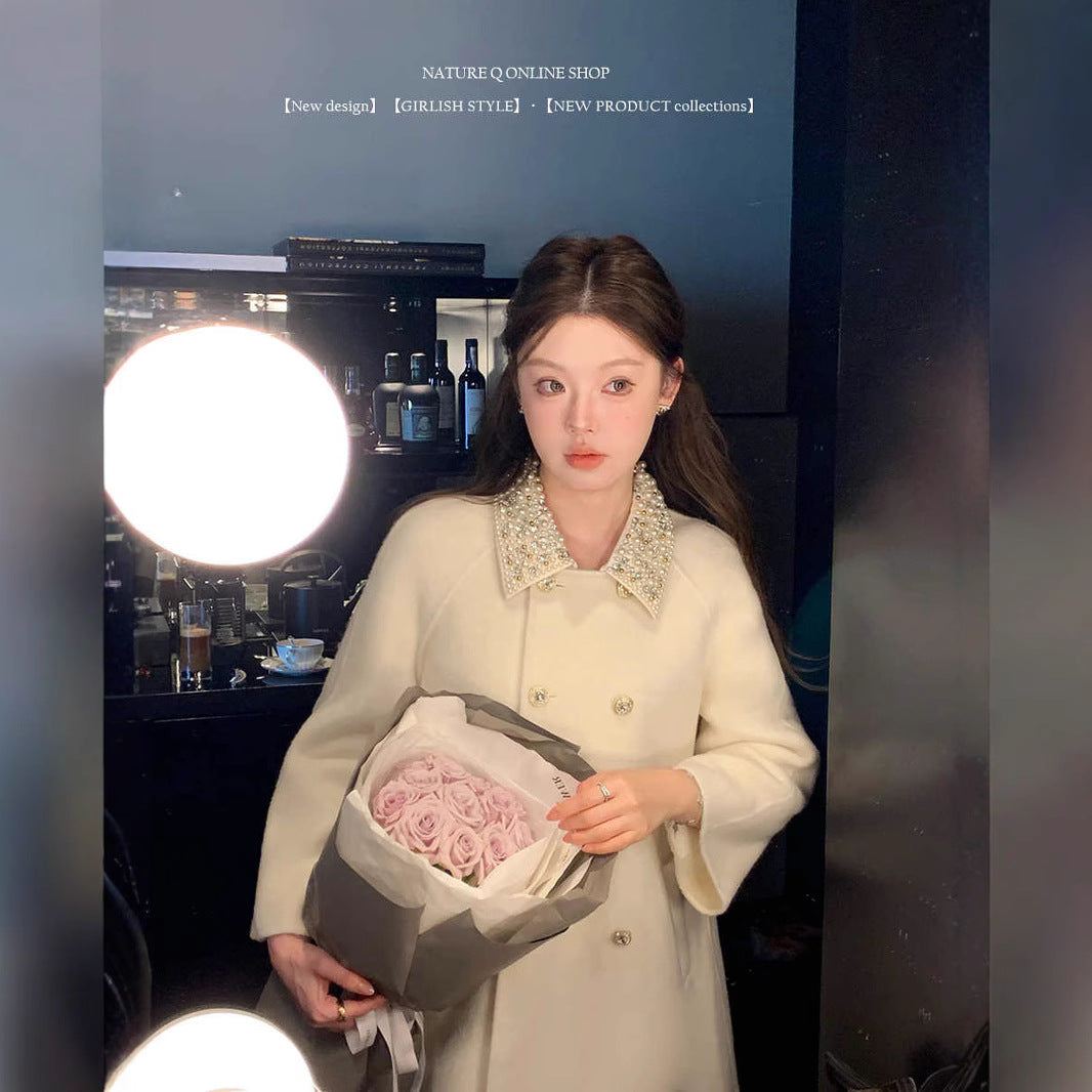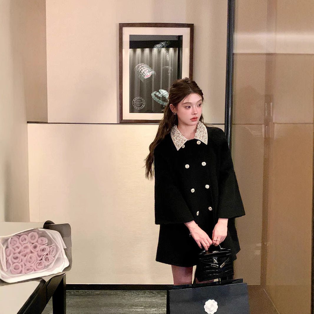 Luxurious Women's Double-faced Woolen Goods Artificial Wool Black Coat