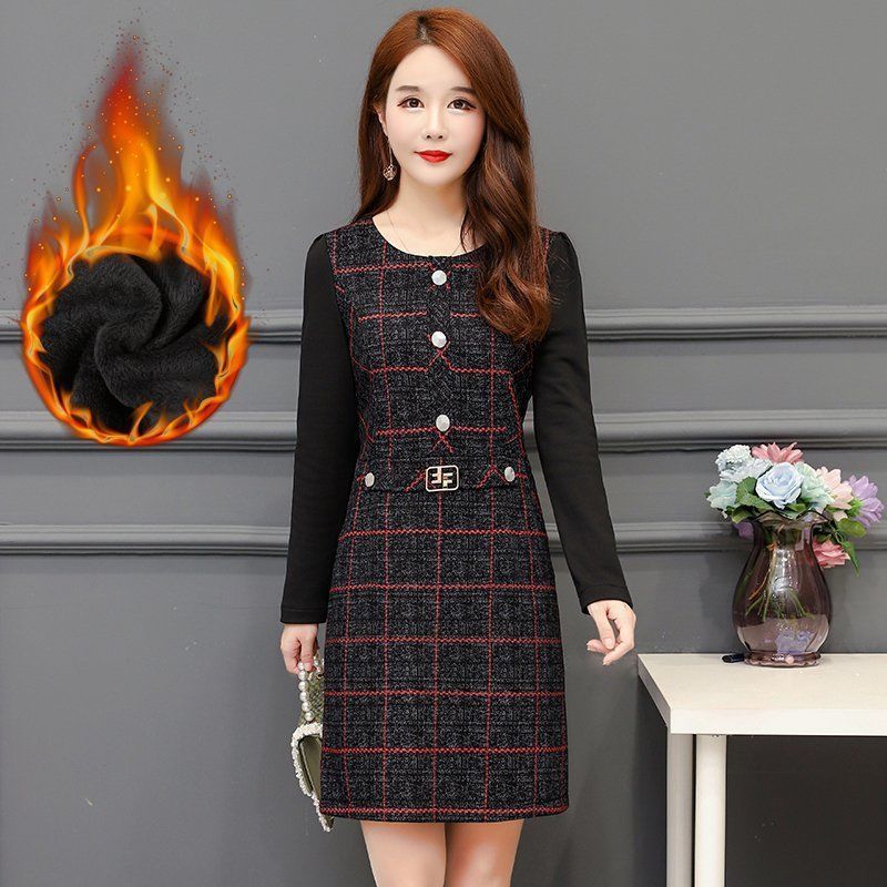 Young mother autumn winter dress